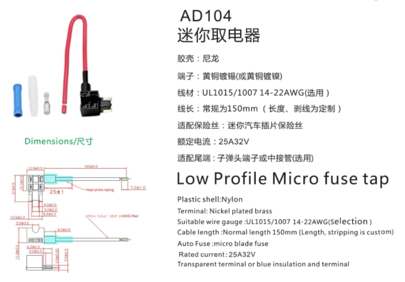 Suitable wire gauge : UL1015/1007 14-22AWG(Selection)